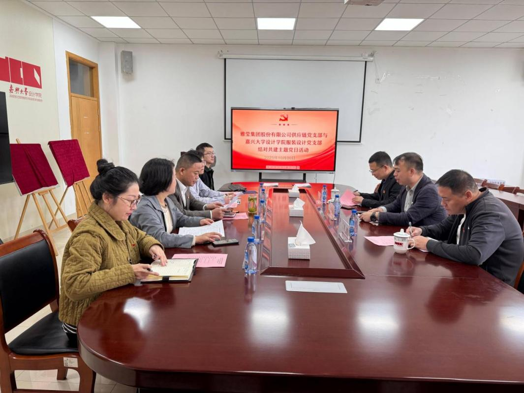 公司党委书记蒋建其,党委委员、副经理裘玉英,服装设计系党支部书记李端,雅莹集团供应链党支部书记钟英亮及双方支部委员共同出席。活动由裘玉英主持。