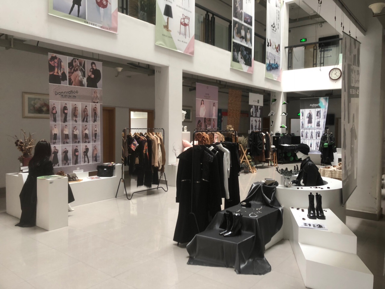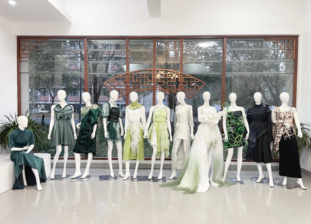 参与本次联展的课程有《项目化女装品类设计》《服装陈列设计》《女装设计1》3门课程,为确保课程的顺利开展与实施,课程进一步整合多方资源,聘请嘉兴雅莹集团技术总监、一叶工作室服装数字化设计师、嘉兴思创服装设计公司培训顾问作为全程指导教师,通过“一课双师”实训教学、项目化教学等方式将企业产品研发模式、服装卖场陈列技法等实践经验引入课堂,在专业老师和企业导师的精心指导下,来自服装与服饰设计专业的70余名员工创作了80余件高水平、高质量的艺术作品,为大家提供了一场内容丰富的艺术盛宴。