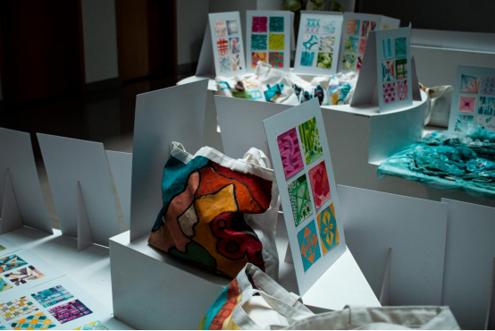本次展览由以“点、线、面”课程基础教学结合色彩设计方式的教学成果展示、以“五彩嘉兴“为主题展开的空间色彩构成呈现、以思政教学融入艺术设计专业课程的成果展现、以依托“环保袋”为载体的“设计”主题呈现四大板块组成,共展出个人画作九十余件,主题系列作品四件,环保创意布袋二十余个,主题展板五件。员工在创作过程中运用了大量绘画技法对色彩进行表达,如平涂法、勾线法、点绘法、喷溅法、粘贴法等,使每件展品具有更加浓厚的色彩气息与艺术底蕴。