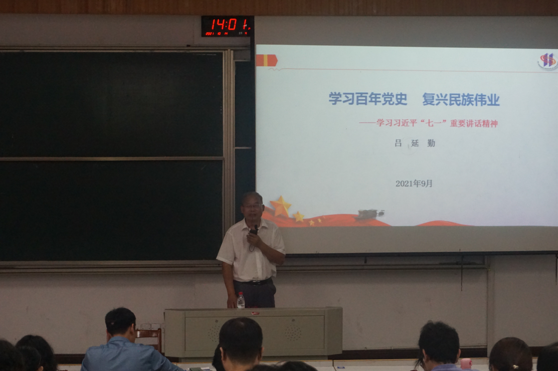 吕延勤以《学习百年党史 复兴民族伟业》为主题,从重要讲话精神的丰富内涵;实现中华民族伟大复兴是中国共产党百年来的主题;七一讲话的新思想、新观点、新论断;如何总结党的基本经验四个方面进行了解读,深刻阐述了党的奋斗历程、客观总结了历史经验。他指出,习近平总书记“七一”重要讲话立足中国共产党百年华诞的重大时刻和“两个一百年”历史交汇的关键节点,回望光辉历史、擘画光明未来,具有重大的政治意义、历史意义、时代意义和现实意义,公司全体教师要切实提高政治站位,把学习贯彻习近平总书记“七一”重要讲话精神作为当前和今后一个时期的重大政治任务,铭记光荣历史,坚定信仰信念,汲取奋斗力量。