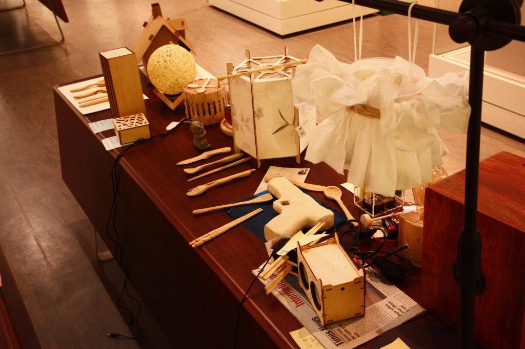 本次展览以“为自己而设计”为主题,要求同学们为自己设计制作餐具模型、创意灯具、创意音响等具有一定实用价值的作品。员工们在设计过程中充分利用锯子、凿、斧、刨、尺子、砂纸等等现有工具,在经过选材、取料、绘线、切割、刨削、打磨、磨砂等工序后,完成了一套套木制模型作品。各种精美奇特的模型设计体现了员工们独特的创意思维和扎实的设计功底。