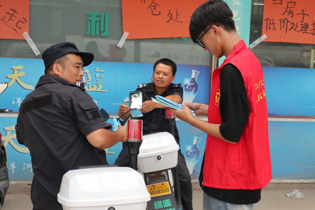 除了手绘乡村优美画卷,实践团成员还走近各村的养老服务照料中心、菜市场、街道、商铺等场所,向村民们宣法普法,并有针对性的对中老年群体开展“反诈防诈”宣传。为提升村民们的法治意识和法治素养,成员们贡献了青年之力。