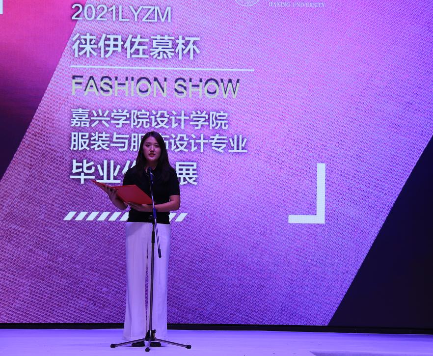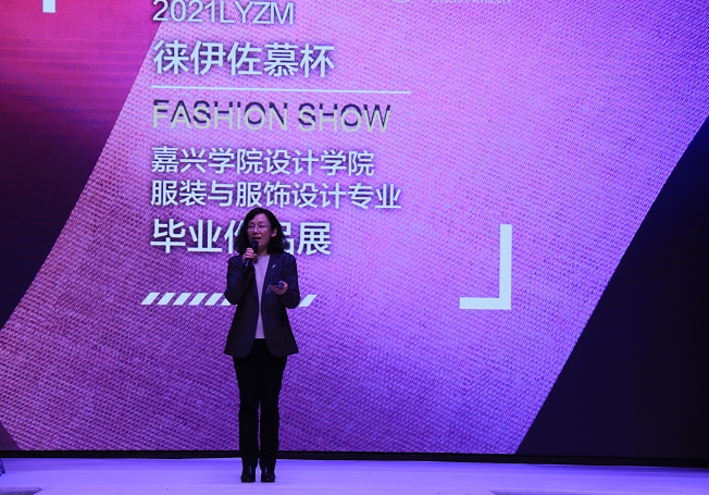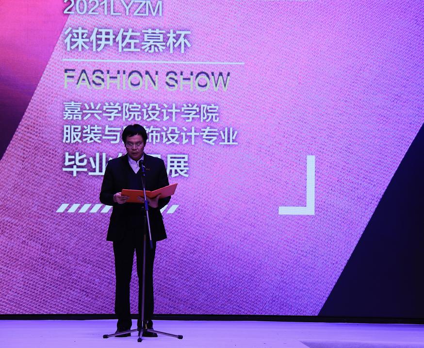 张琦代表公司宣布“徕伊佐慕”杯2021服饰专业毕业设计作品动态展演开幕。
