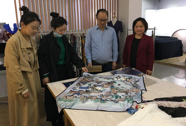 浙江荣大时尚有限公司吴建荣董事长详细介绍了企业目前在面料花型设计、面料开发方面等情况,并带领参观了企业面料数码印花车间的生产线以及印花面料样品陈列间,吴建荣董事长表示希望与嘉兴公司永利yl23411官网开展校企合作。