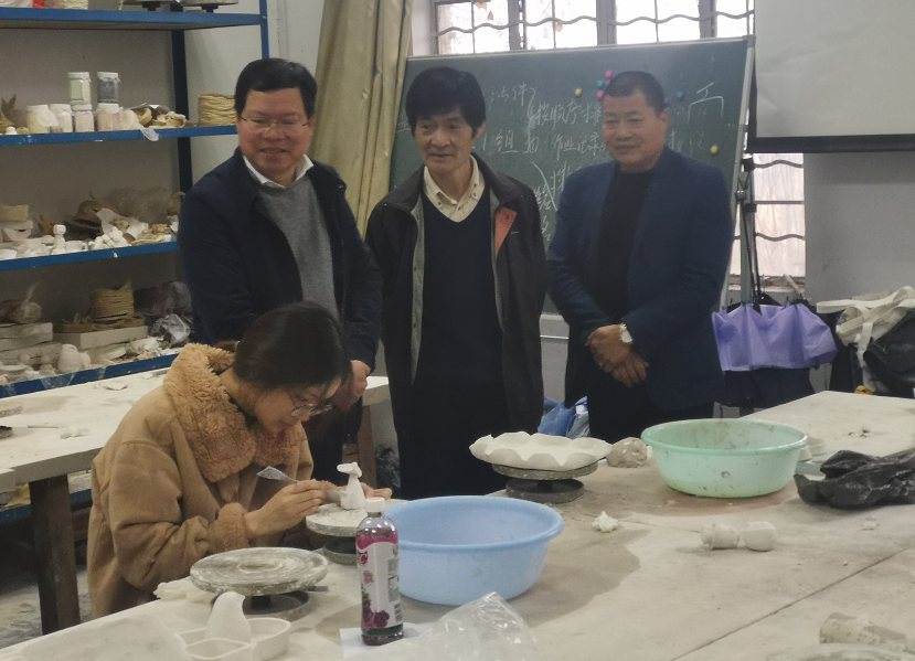 公司党政领导对周兴观一行表示热烈欢迎,并介绍了公司办学特色、校企合作、产教融合、师生参展参赛、设计成果转化等情况。周兴观一行先后参观了北区陶艺实验室、艺术设计产学研成果展示中心,并与永利yl23411官网师生亲切交谈黑陶制作工艺。