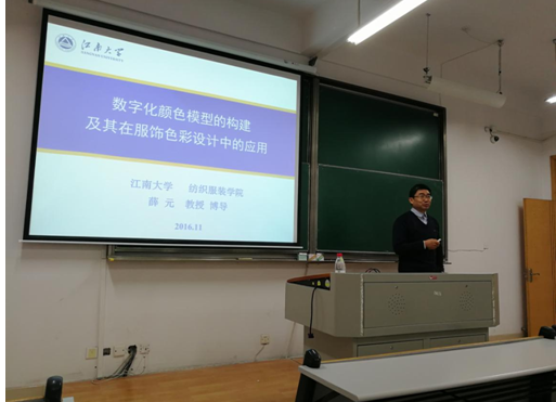 12月27日上午,江南大学纺织服装公司薛元教授为公司师生作题为《数字化颜色模型的构建及其在服饰色彩设计中的应用》的讲座,薛教授从色彩的定义、色彩的混合等方面入手,介绍了服装设计中的色彩表达的方法以及生产中利用数字化模型进行纺纱混色等色彩设计的一些最新研究成果。
