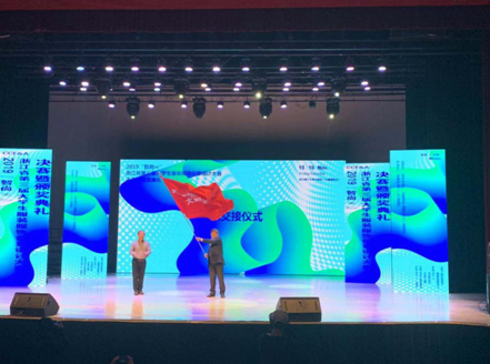 公司党委副书记严从荃从大赛秘书处浙江理工大学纪委书记孙旭东手里接过下届承办赛旗,并发表讲话,表达公司将积极筹备,抓好落实,迎接各高校参赛师生于2020年到南湖之畔再相聚。(初稿 李燕 终审 裘玉英)