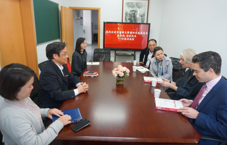 11月14日下午,英国布莱顿大学国际交流处处长嘉拉斯拓扑先生一行到公司进行参观访问,公司鲁恒心经理热情接待了代表团一行,国际教育公司负责人施敏颖陪同访问。