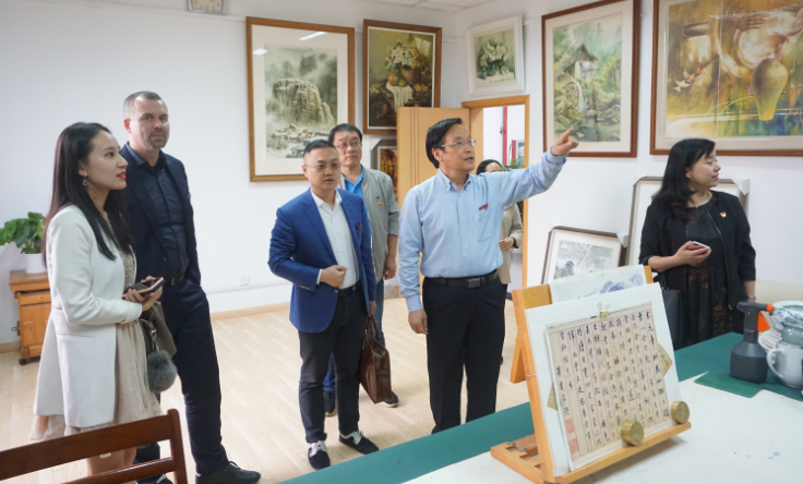 鲁恒心经理对Martin Adam先生一行的来访表示欢迎,并简要介绍了公司各专业的基本情况和办学特色优势。代表团一行参观了公司毕业生作品展、服装设计与工程实验室等,走进公司画室和课堂参观交流等。对公司的服装设计与制作工作、中国画以及各专业实验室留下了深刻的印象。