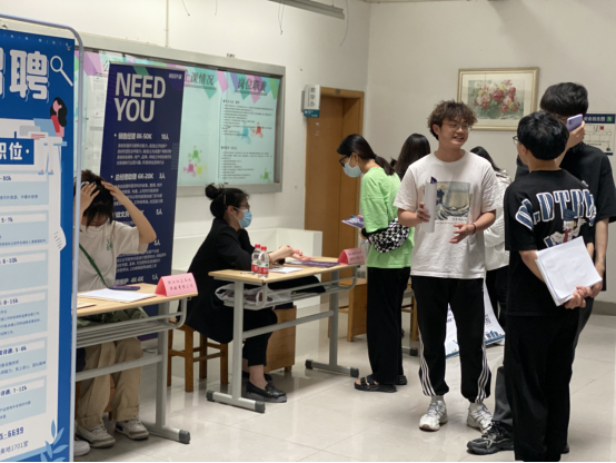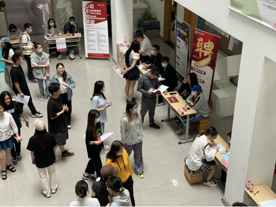 在严格遵守公司疫情防控相关规定的前提下,来自嘉兴市本级的嘉兴市伟亮广告有限公司、嘉兴市艾可广告传媒有限公司等15家用人单位来到校内,提供就业岗位50余个。公司来自视觉传达设计、服装与服饰设计、工业设计等专业100余名员工陆续错峰来到现场,咨询自己感兴趣的岗位。其中,视觉182班廖清华表示,此次招聘会对即将走出校门的他们非常有吸引力,在疫情防控常态化当下,能够在校内直面企业进行沟通,可以更直观了解各个岗位招聘需求,方便毕业生进行对比和选择,提高就业精准度和满意度。此外,也有大二、大三员工被招聘会吸引,提前了解求职门槛,为职业生涯规划提供参考。招聘会现场秩序井然、气氛热烈,成效良好。