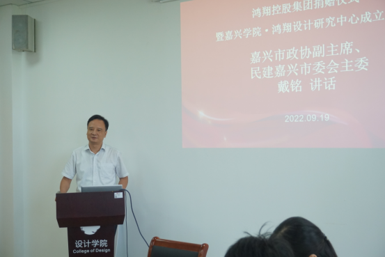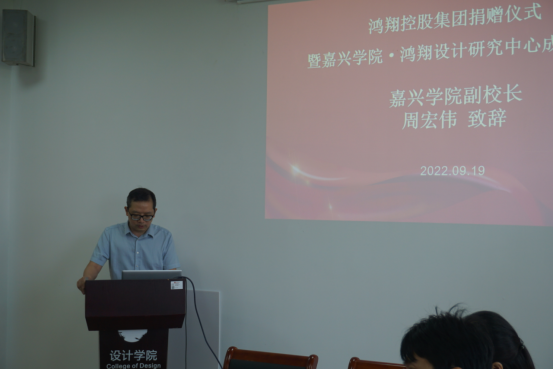 周宏伟副董事长向嘉兴公司·鸿翔设计研究中心的成立表示祝贺,对鸿翔控股集团对嘉兴公司发展做出的支持表示感谢。他指出,鸿翔集团的慷慨捐赠不但在物质上为公司的发展添砖加瓦,也在精神上鼓舞公司师生向上向善,这必将更好的推动公司教育事业的发展。嘉兴公司·鸿翔设计研究中心的成立必将深入推进公司人才培育链与地方优势产业链的充分对接,促进公司相关团队建设发展;同时,对嘉兴公司设计资源与相关制造业深度融合,对嘉兴城市建设,也将起到积极的促进作用。