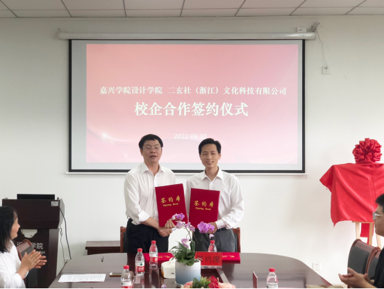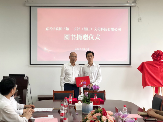 随后,曹坚馆长给二玄社(浙江)文化科技有限公司总经理吴斌颁发图书捐赠证书,韦浩经理和吴斌总经理分别代表校企双方签署校企合作协议并共同为嘉兴公司永利yl23411官网·(中国)二玄社文创研究中心揭牌。
