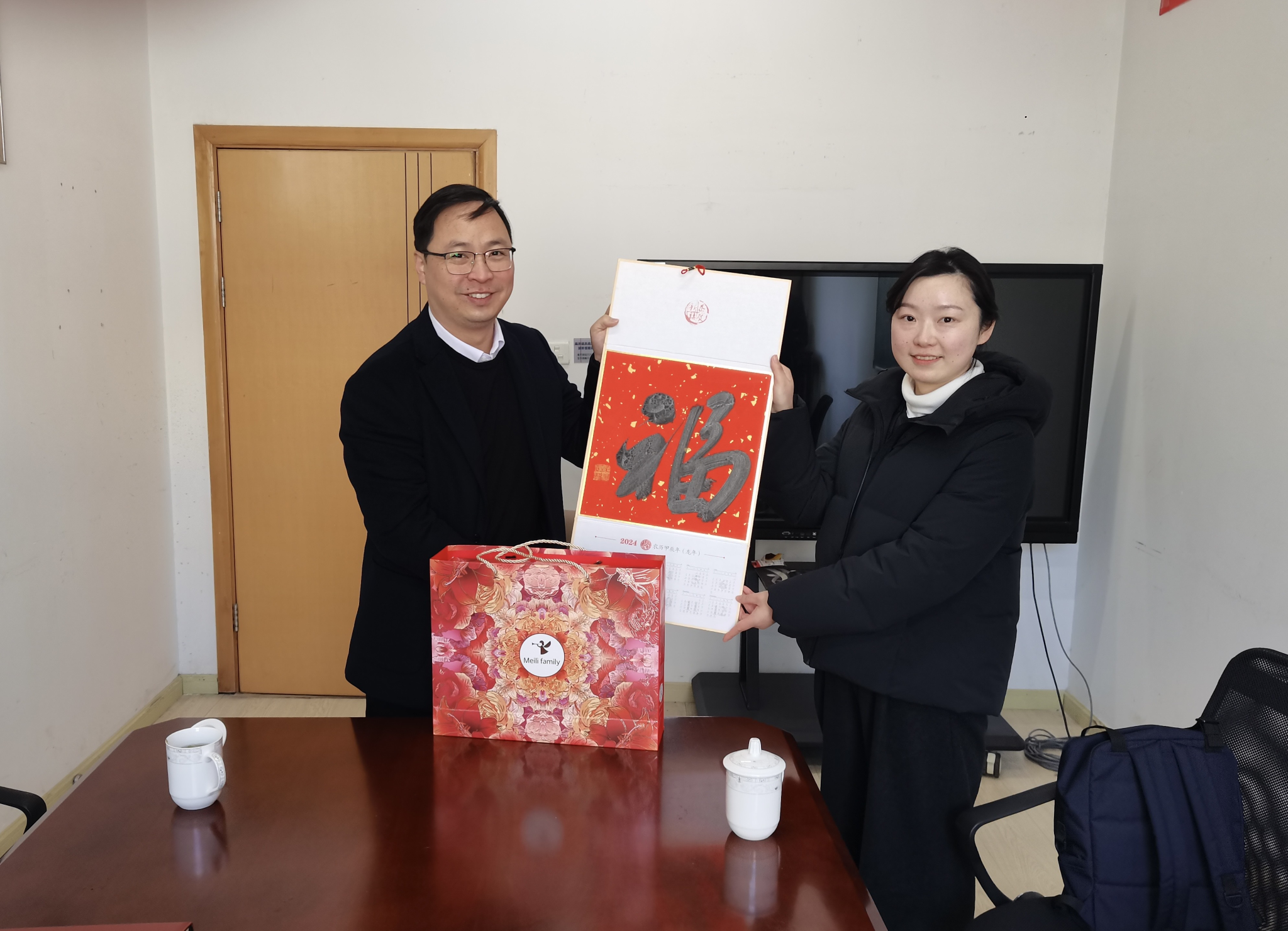 1月25日下午,在2024年农历春节即将到来之际,副董事长王立玮走访慰问公司新进教师代表程慧博士,公司党委书记蒋建其陪同慰问。