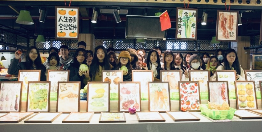 本次画展由公司周琳老师指导,共计展出了环境设计231班同学共同绘制完成的50余幅作品。作品内容取材于农贸市场,为了这次画展,同学们多次前往菜市场进行实地考察,通过设计理念的再次加工,最终产生了一幅幅写实又颇具创意的作品。“感受到了菜市场中的生活气息,体会到真正的将艺术融入生活当中,通过学习,我不仅在艺术技能方面有了提升,还在思维和审美方面得到了锻炼。”环设231的金欣桐说。