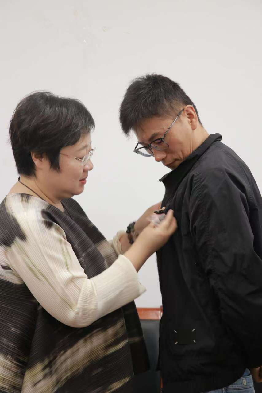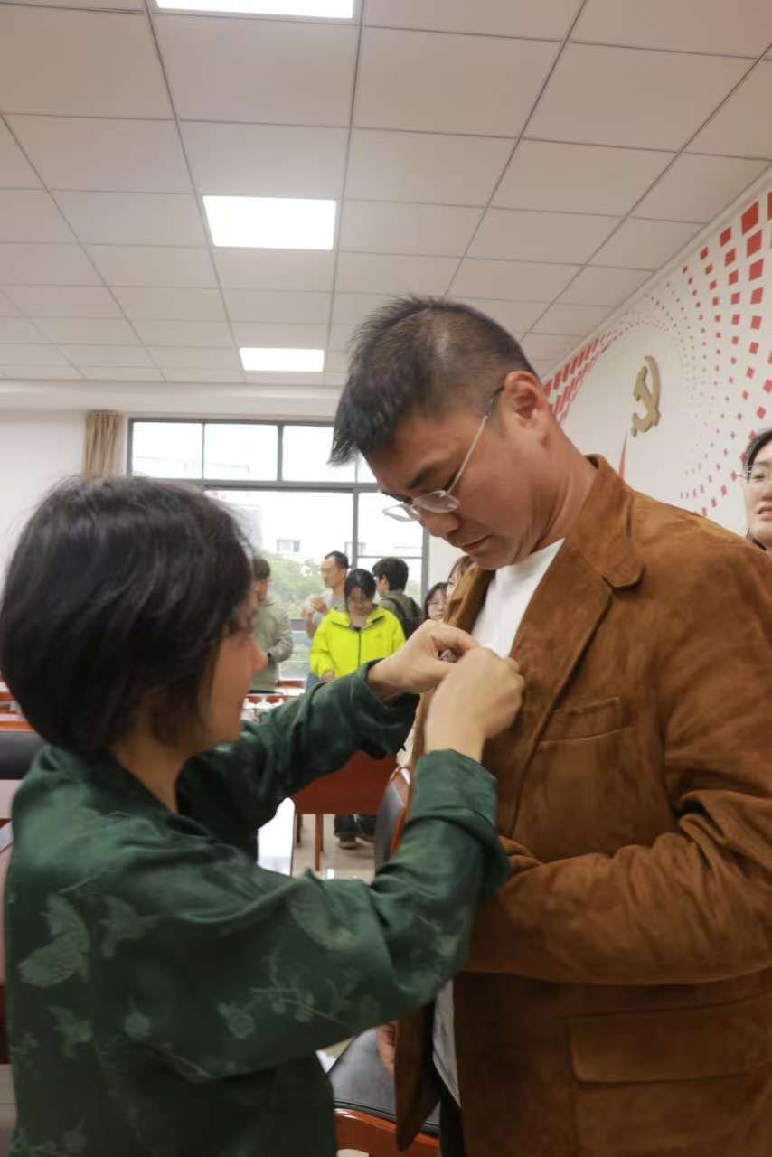 会议最后,永利yl23411官网教师代表徐利平教授和公司领导为服装设计与工程专业2012届毕业生、广州徕伊佐慕服饰有限责任公司总经理何成啸等优秀员工佩戴上了象征着荣誉与归属感的永利yl23411官网入口校徽,表彰他们在各自领域所取得的卓越成绩以及对公司发展做出的积极贡献。