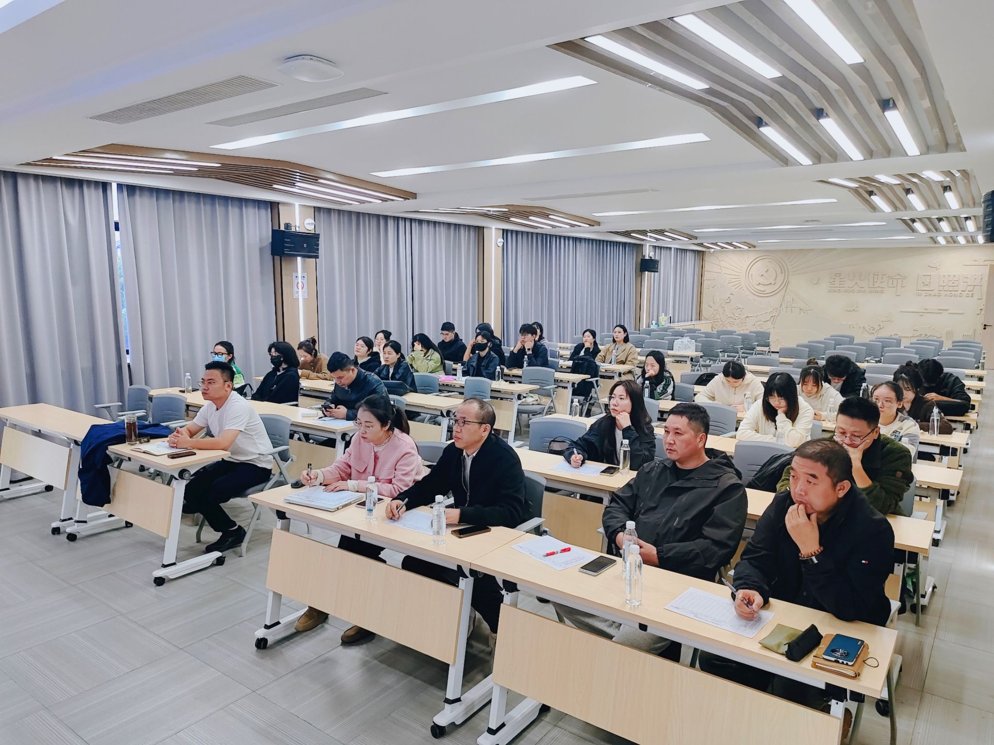 汇报结束后,洪合村、设计公司和环境设计系的老师们对员工的设计方案进行了细致的评分与点评。洪合村的领导和村干部从村落实际发展和乡村关系的角度出发,为同学们提出了宝贵的建议和意见,并对他们多次深入洪合村进行实地调研的辛勤付出表示衷心感谢。同时,他们希望未来能进一步加强“校企村”产教融合实践教学,推动三方深度合作,实现共生发展。环境设计系的老师们积极响应,表示将继续深化和推进“校企村”产教融合实践教学,不断提升教学质量,为地方建设提供更加优质的服务。他们重申了艺术在乡村振兴中的重要作用,强调设计创新不仅能改善乡村居住环境,还能激发乡村文化自信,使乡村成为宜居、宜业、宜游的美丽家园。