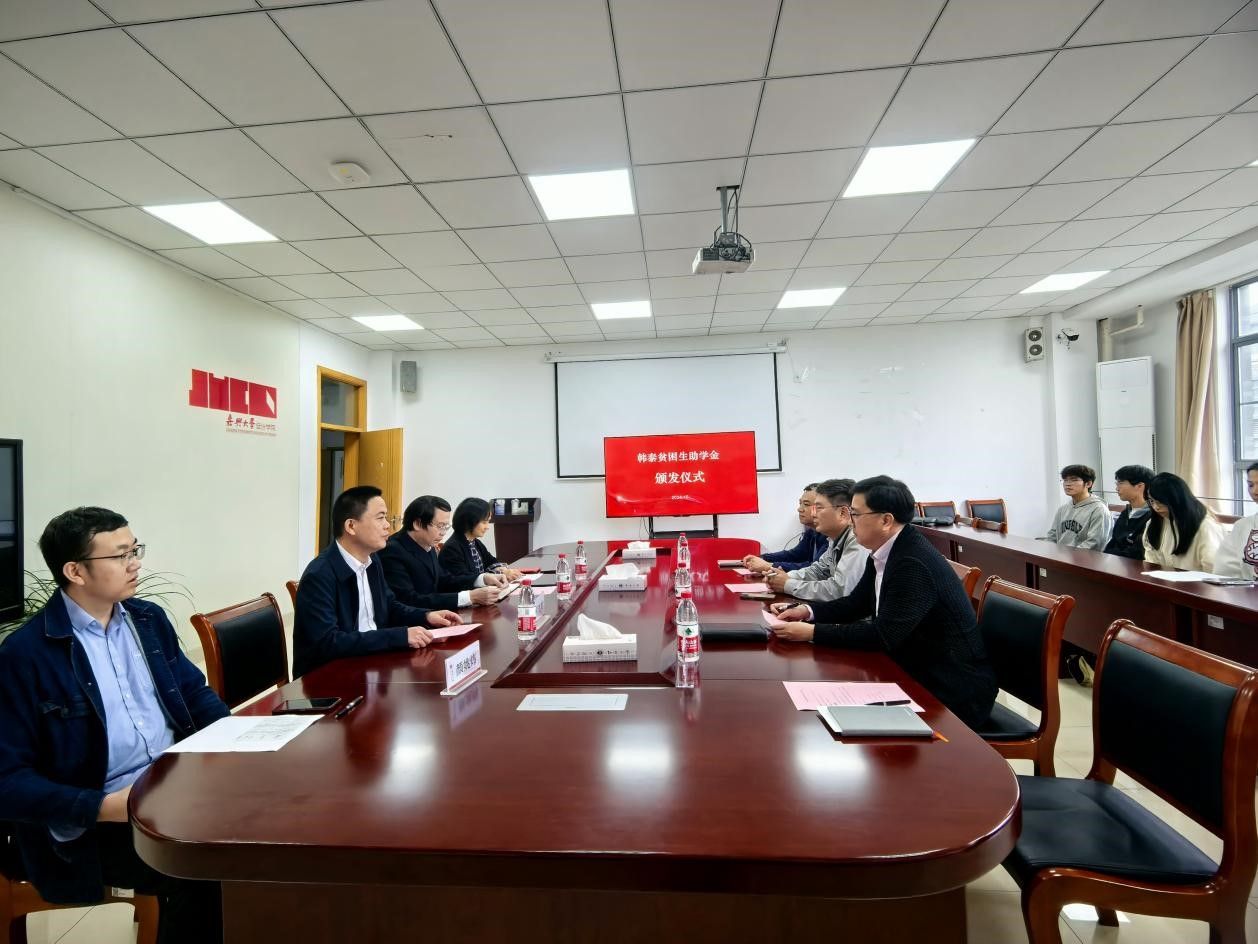 10月31日下午,永利yl23411官网韩泰轮胎贫困生助学金颁奖仪式在永利yl23411官网举行,韩泰轮胎有限公司总经理姜承炫、党委书记、副总经理顾忠伟、环境安全部部长刘检华,永利yl23411官网经理韦浩、党委书记蒋建其及相关教师、企业代表、员工代表参加仪式。