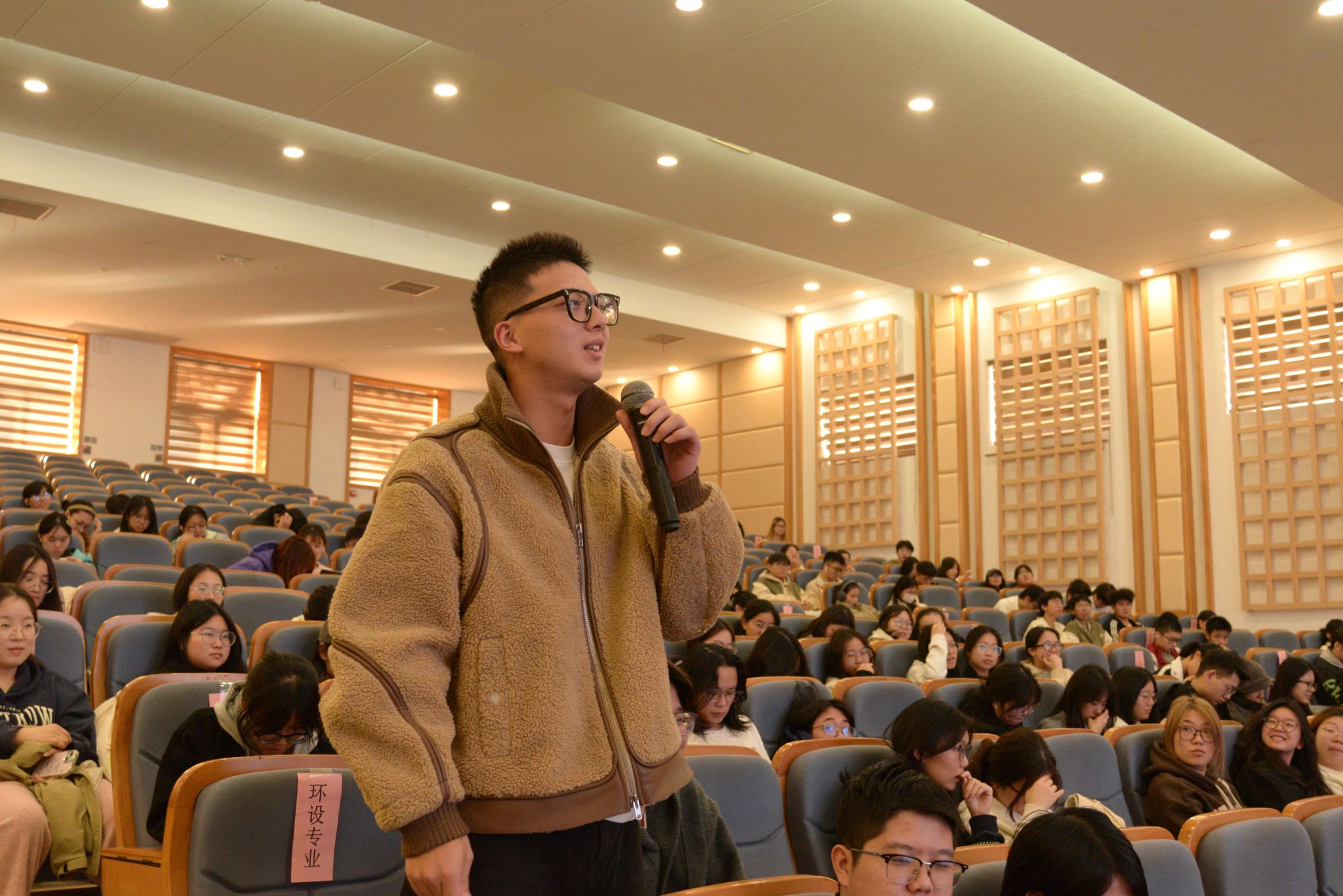 讲座尾声交流互动环节,现场同学踊跃提问,何成啸就同学的提问详细解答,并鼓励同学们要尽早树立明确的学习目标,提前做职业规划,并为目标和规划制定实现的计划。