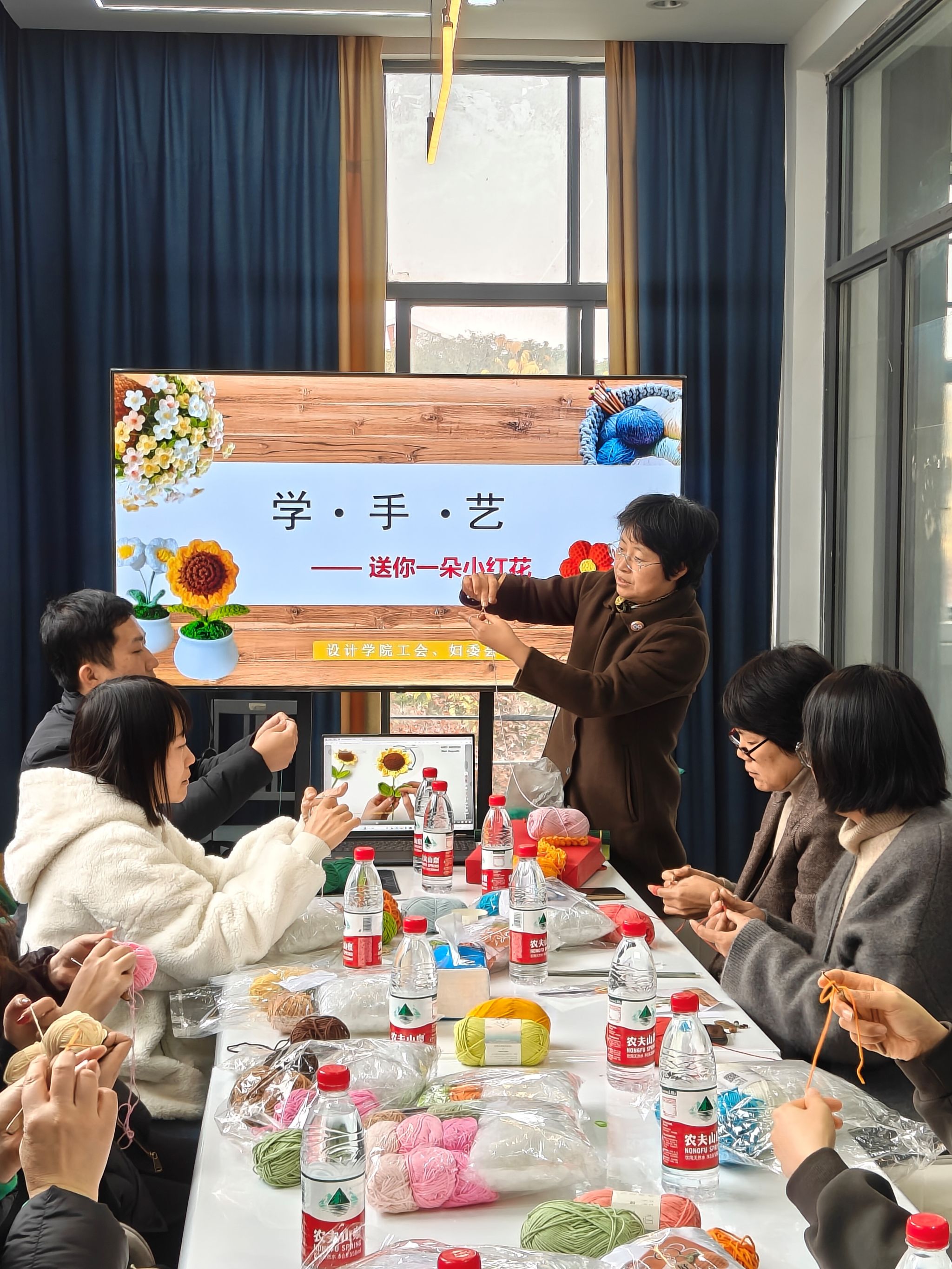 12月5日下午,公司工会、妇委会组织公司教职工开展以“送你一朵小红花”为主题的手工编织活动。活动伊始,由于晓辉老师主要讲解编织技艺在日常生活的运用,并在讲解之后示范编织技法,用钩针和毛线织出美丽的手工花朵。参与活动的老师们别出心裁,除了编织花朵造型,还有手工挂件等。