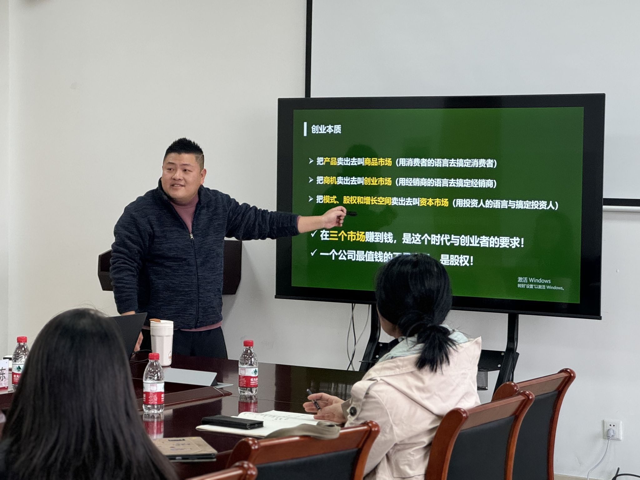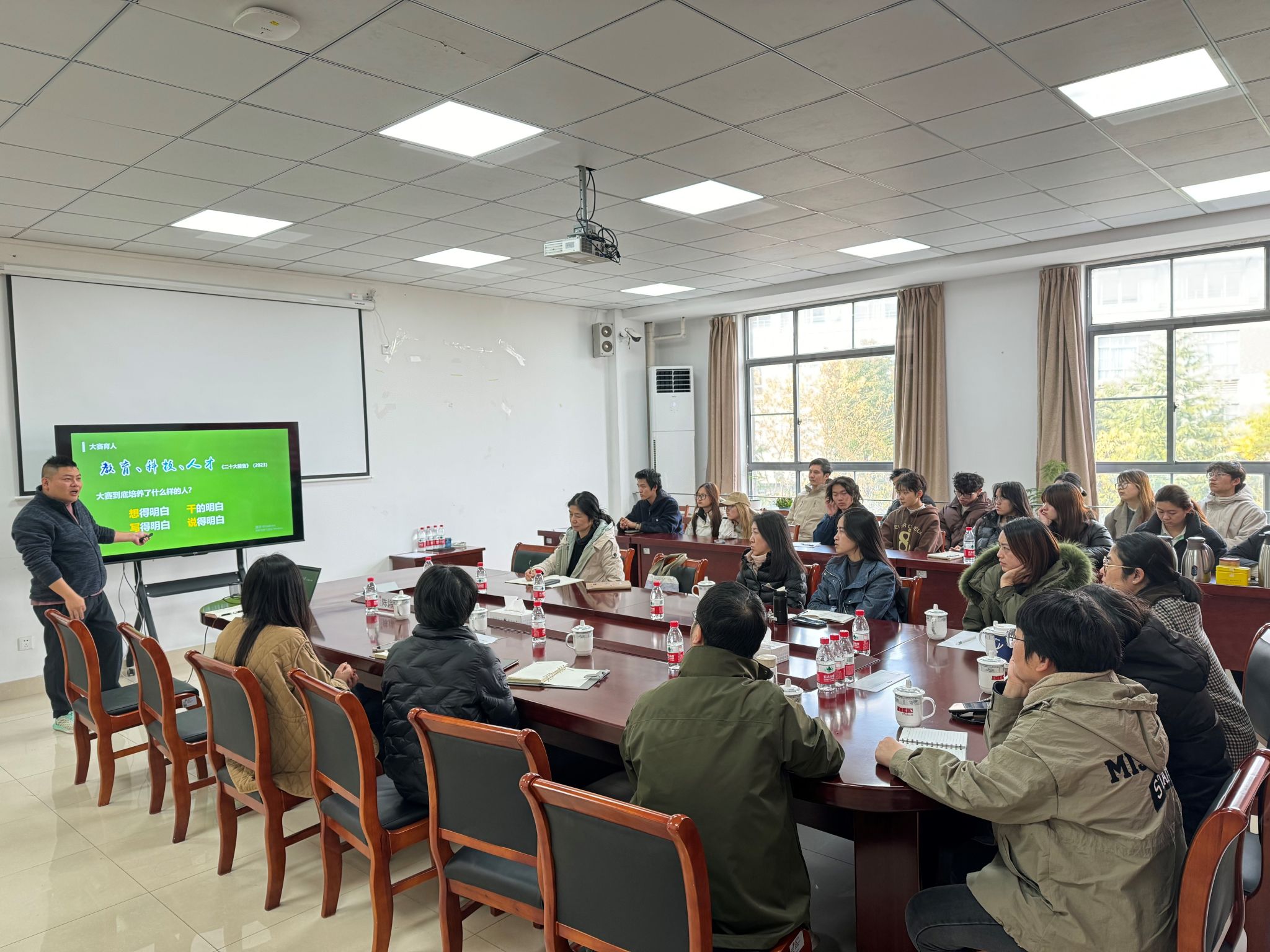 备赛辅导会上还特别邀请创新创业公司陈炜栋老师作《创新创业类竞赛的选题和技巧》主题分享,各系有参赛意向的员工积极参与讲座。陈老师从用户视角、项目特点、痛点分析、价值维度等方面建议如何选题和备赛,讲解过程中就诸多获奖案例展开精彩详尽的分析。会后,公司教师针对项目当前的难点、痛点与陈老师展开交流。