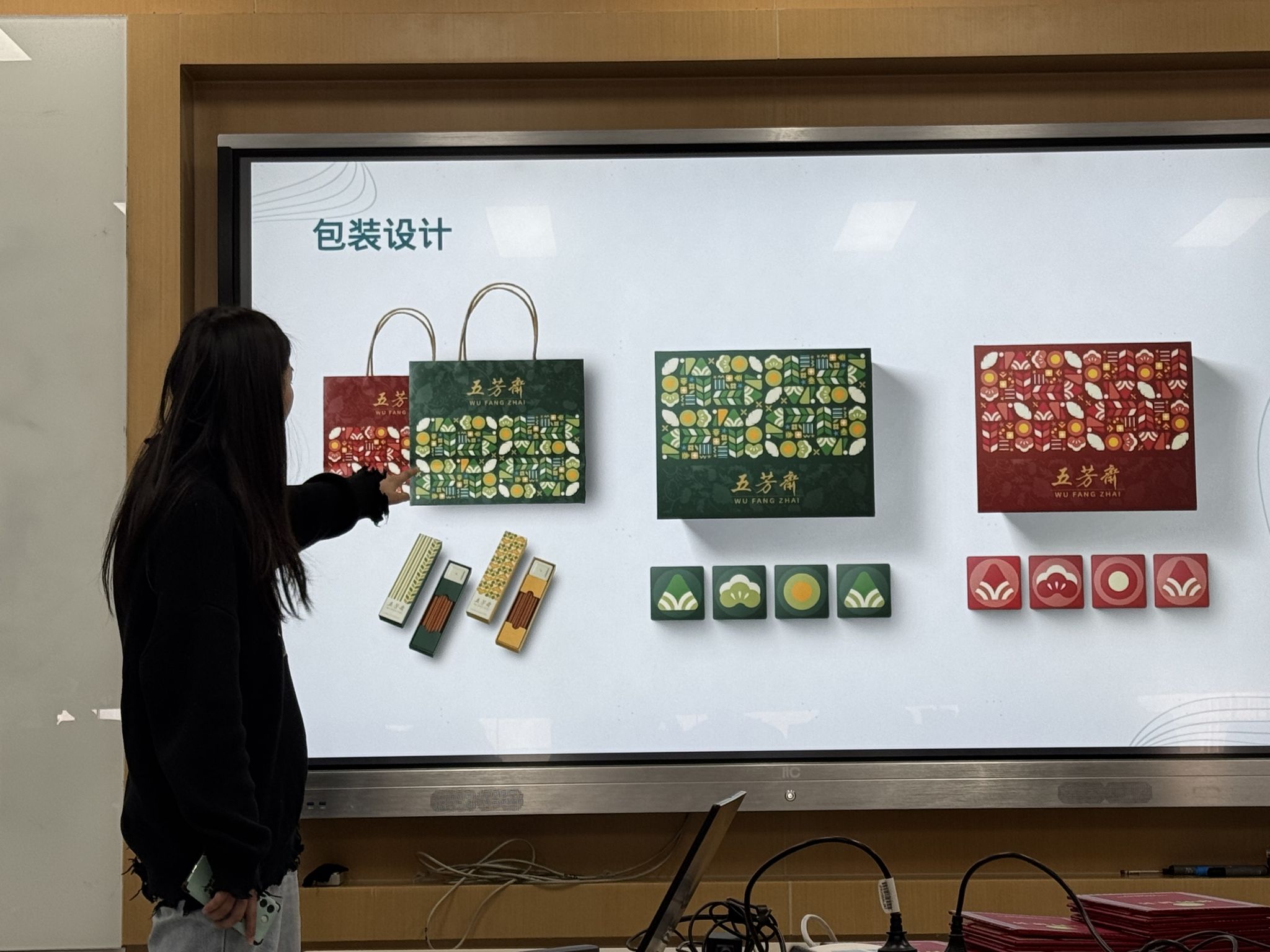 本次工作坊为视觉211、212班级同学在公司周琳老师指导下,深入了解了五芳斋的国家级非物质文化传统技艺。员工们不仅学习了技艺的基本流程,参观浙江省传统工艺工作站-五芳斋非遗体验馆学习相关非遗文化,还通过现代设计理念对五芳斋非遗体验馆馆标、IP糯糯龙表情包及蛇年电子红包、非遗文创、传统产品进行了创新设计。同学们多次前往企业与非遗传承人、企业工作人员进行交流及实地考察,通过设计理念的再次加工,最终产生了一件件颇具创意的作品。在成果汇报会上,员工们展示了他们的设计作品,并进行了精彩的讲解。五芳斋的代表和相关专家对员工们的作品给予了高度评价,认为这些作品不仅具有很高的艺术价值,还具有很强的市场潜力,并评选出多项作品即将制作投入市场。此次工作坊不仅为员工们提供了一个展示自我、锻炼能力的平台,也为非遗文化的传承与发展注入了新的活力。员工们纷纷表示,通过这次工作坊的课程学习,他们对非遗文化有了更深刻的理解和认识,也更加坚定了传承和创新传统文化的决心。