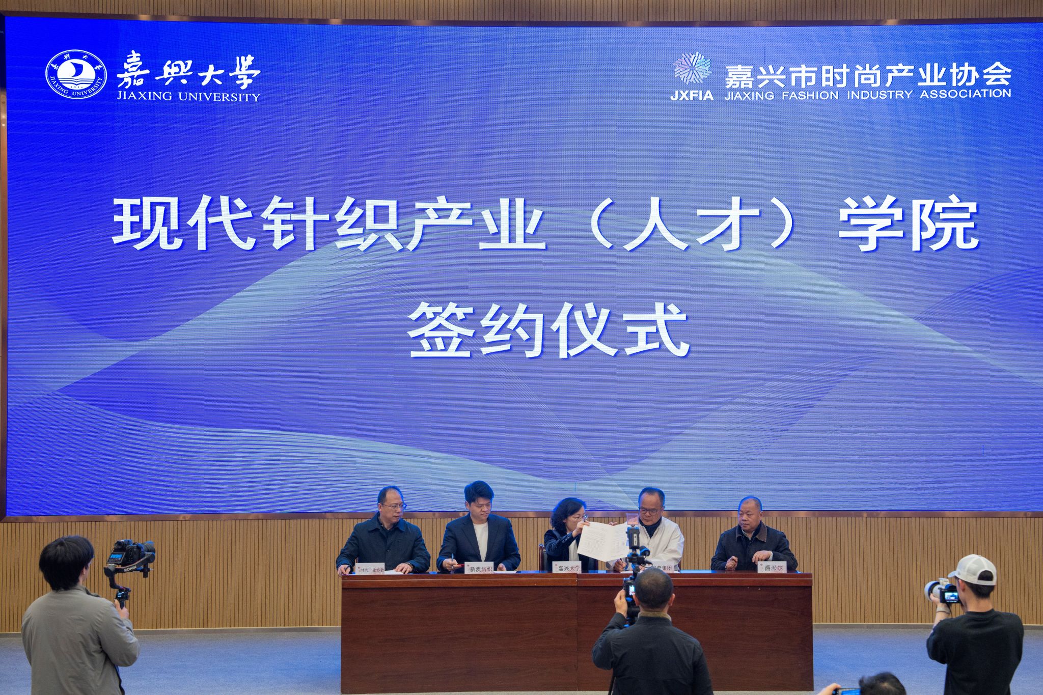 3月28日下午3:30,由嘉兴市时尚产业协会与永利yl23411官网入口联合主办,嘉兴市教育局、经信局、人社局、工商联、团市委等多部门支持的“聚焦产教融合,‘织’就时尚未来”嘉兴市时尚产业产教融合研讨会在永利yl23411官网入口行政楼报告厅隆重举行。来自政府部门、行业协会、龙头企业及高校的近150位代表齐聚一堂,共同见证“现代针织产业(人才)公司”签约揭牌,探讨时尚产业人才培养新路径,为嘉兴打造“时尚之都”注入新动能。研讨会由永利yl23411官网副经理裘玉英主持。