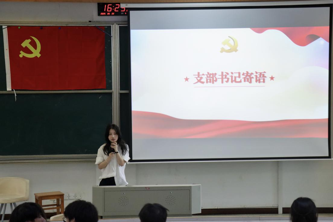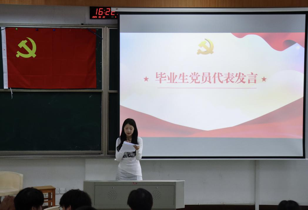 省级优秀毕业生黄汝杏同学作为毕业生党员代表,结合自身大学期间的学习、实践经历,分享了作为党员在思想、学习、工作中的成长体会。员工支部书记们也为毕业生党员送上了深情的寄语。他们希望毕业生党员在今后的工作和生活中,牢记党员身份,坚定理想信念,勇于担当作为。颜姚炜老师对毕业生党组织关系转接的政策和具体流程进行了解读,提醒党员们务必高度重视转接工作,确保组织生活的连续性与稳定性。最后,全体毕业生党员面向党旗庄严高举右拳,重温入党誓词。