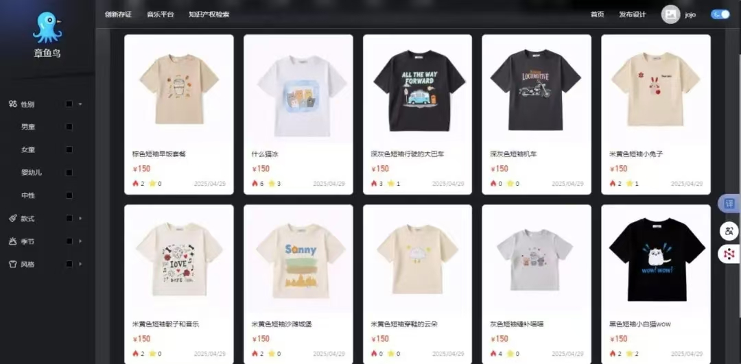 项目成果不仅在技术层面取得突破,更引发社会广泛关注。余俊杰博士团队的项目成果多次被湖州市电视台、《湖州日报》等媒体报道,以“码上许可2.0上线助力童装企业发展”为主题,展现了AI技术如何为中小微企业注入创新活力。截至6月初,平台上的IP创新库已汇集超过700余件可即时调用的可转化设计作品,为产业提供了丰富的创意源泉,同时该平台累计促成交易许可超500件次。