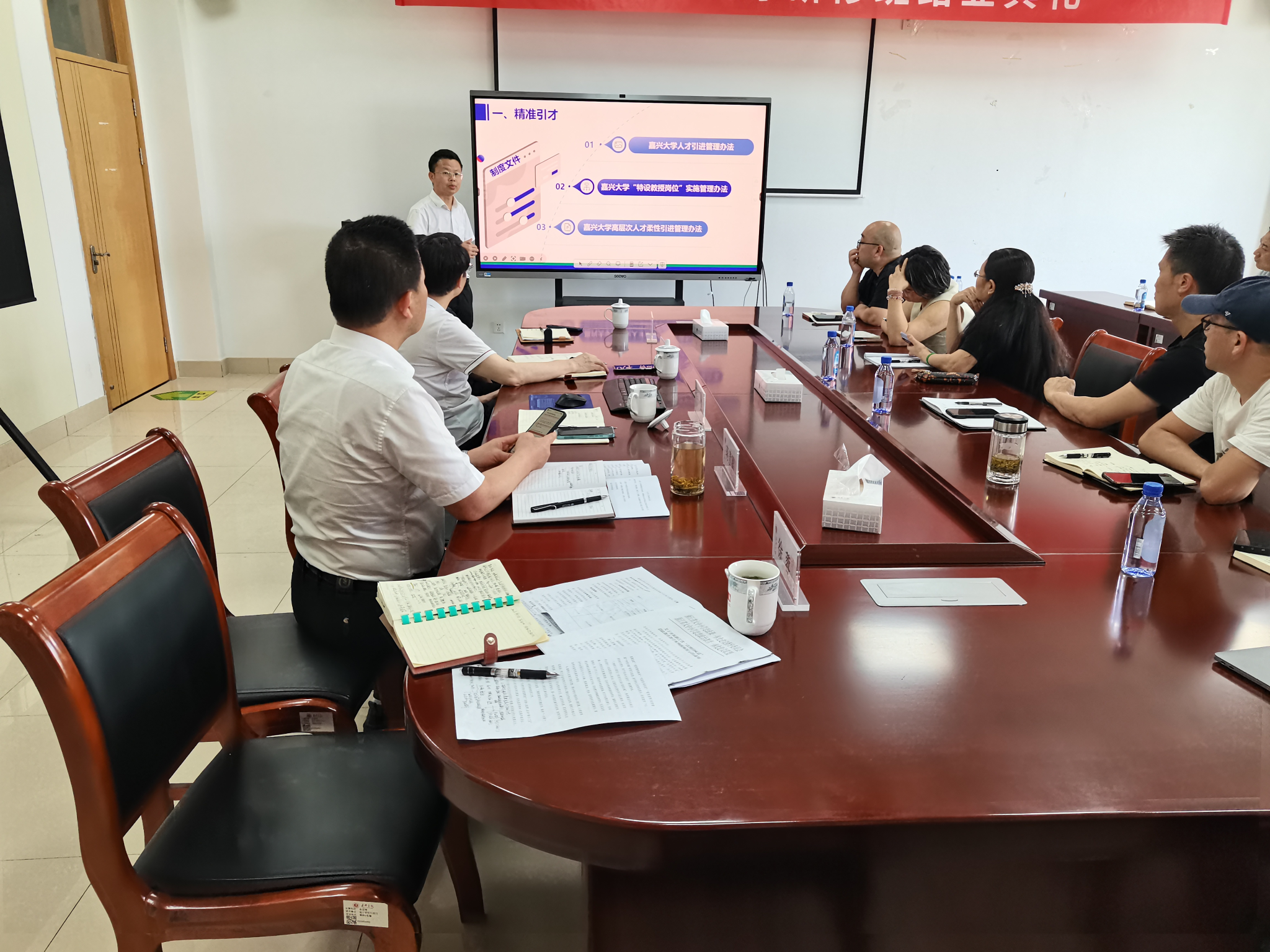 钟伟对公司人事和人才政策进行了解读,重点就人才引进、培育、评价、激励政策和集团绩效工资文件做了解读。与会人员围绕系统构建教师、干部、职员“三支队伍”,全面落实一号工程、一流意识、一把手工作、一流服务、一票决定的“五个一”要求,精准把握人才引、育、评、留、用“五个环节” 等进行了热烈讨论。 特别是对加强公司发展顶层设计谋划,科学制订引才计划,不拘一格引才,多措并举育才、留才等问题进行了深入研讨。韦浩经理充分肯定了参会教师们提出的意见、建议,就大家关心的问题进行了现场解答,分享了对公司发展方向的思考。蒋建其表示,要认真梳理大家的意见、建议,在党政联席会议上专题分析研究,将研讨成果转化为具体的制度、方案、举措和推动公司发展的动力。