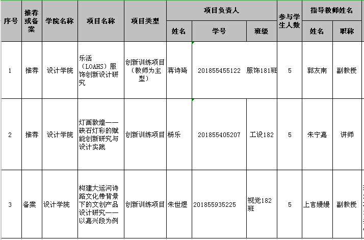 根据公司教务处《关于开展嘉兴公司国家级老员工创新创业训练计划2020年度项目申报的通知》要求,公司及时下发通知,组织鼓励老师申报。按公司分配指标,并经公司组织各项目组进行答辩,经公司专家组认真审阅研究,拟推荐、备案以下项目,现公示如下: