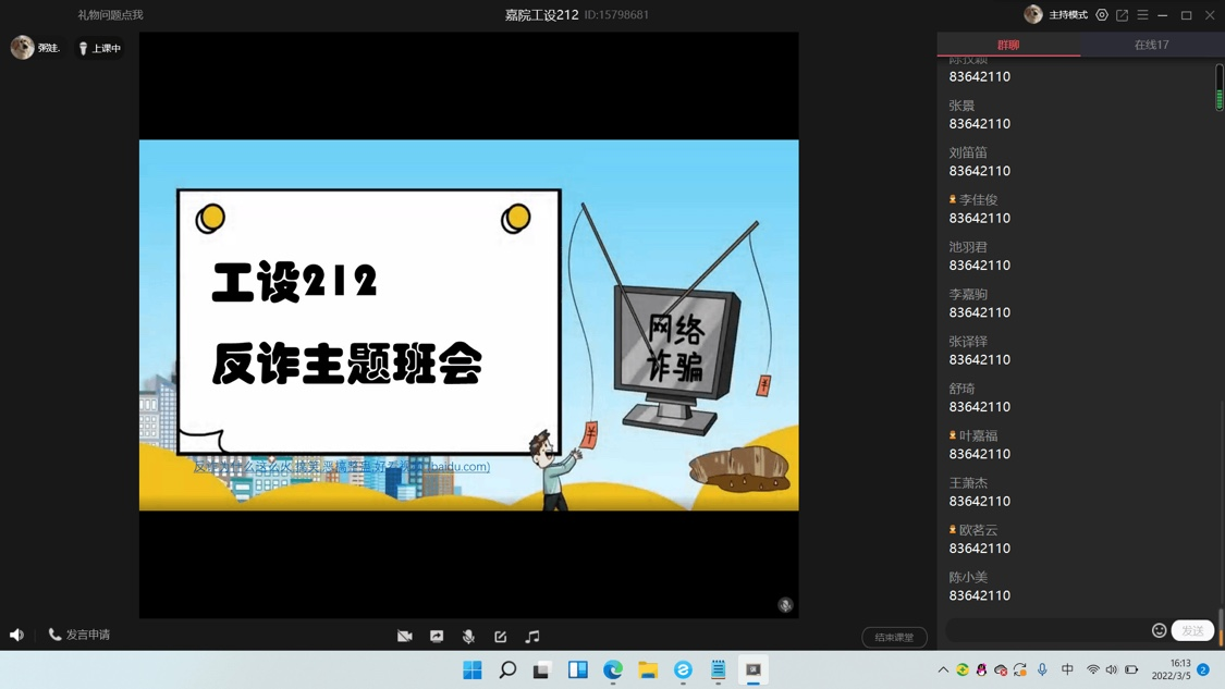 讲座后,各班通过多种形式召开主题班会,积极向身边的同学宣传防范电信网络诈骗的相关知识。本次活动有效提升了公司员工反诈意识和防骗能力,进一步推进了平安校园建设,为未来密切警院联动,共同防范电信网络诈骗打下了良好的基础。