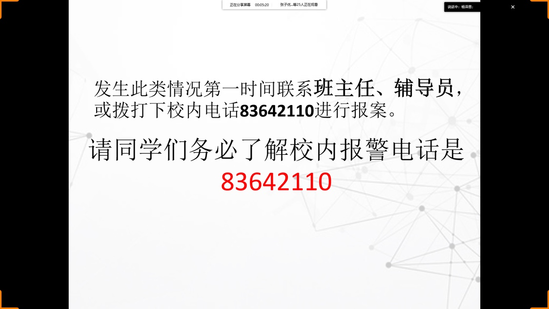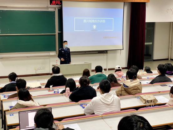 张警官结合多年工作经验,向同学们介绍了当前校园电信网络诈骗形式,重点剖析了易发生在员工群体中的诈骗类型以及如何预防电信网络诈骗、保护个人信息安全、被骗后如何应对等防诈知识。向同学们发放了防范电信网络诈骗宣传单,推荐关注经开警管家,引导大家增强识骗、防骗能力,做到不轻信、不透露、不转账、不参与,鼓励同学们多向亲友同学宣传,号召大家一起加入防诈、反诈的志愿者队伍中来,共同构筑全民反诈堡垒。
