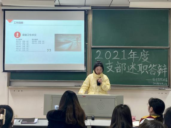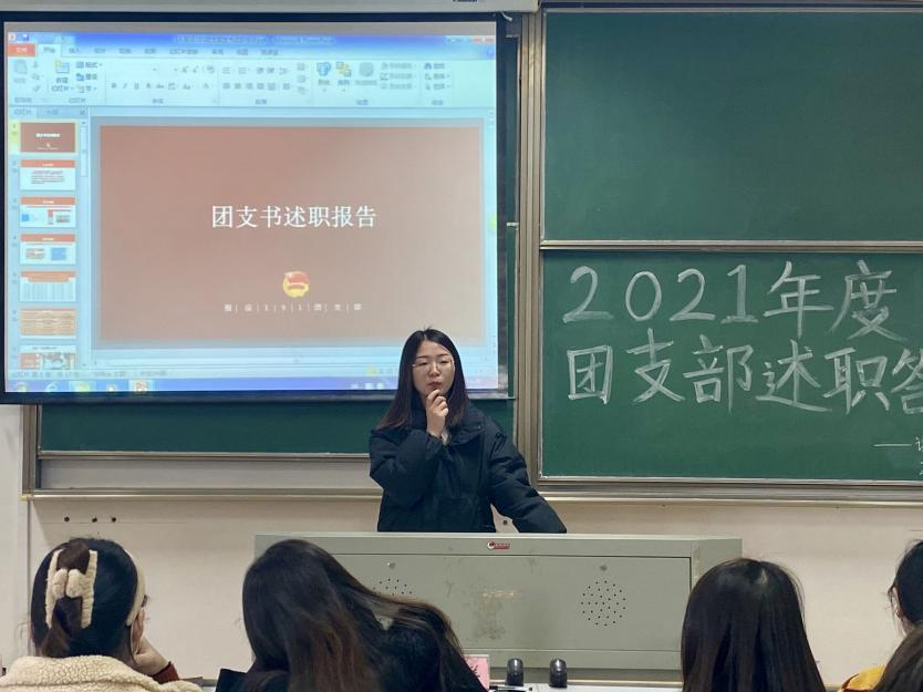 述职答辩中,各团支书围绕班子建设、团员管理、组织生活、制度落实、作用发挥等方面展开述职。汇报团支部这一年组织建设情况、活动开展情况、以及团支部现存不足、今后计划等。
