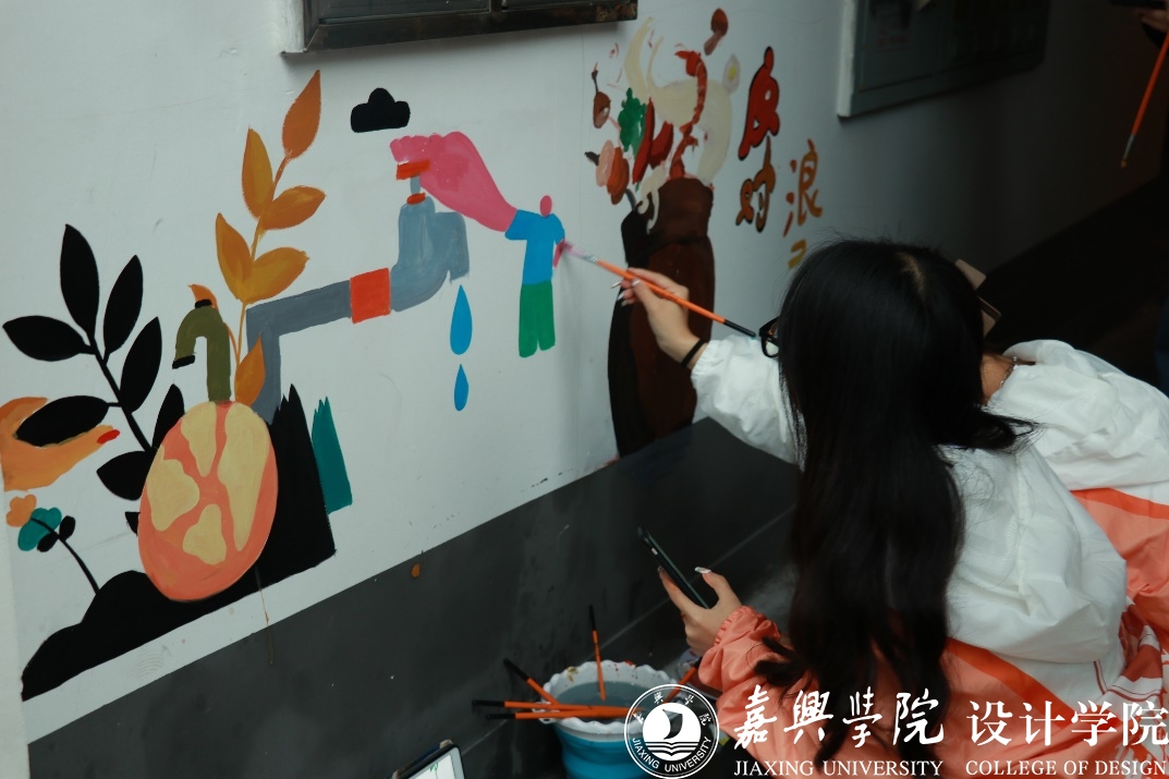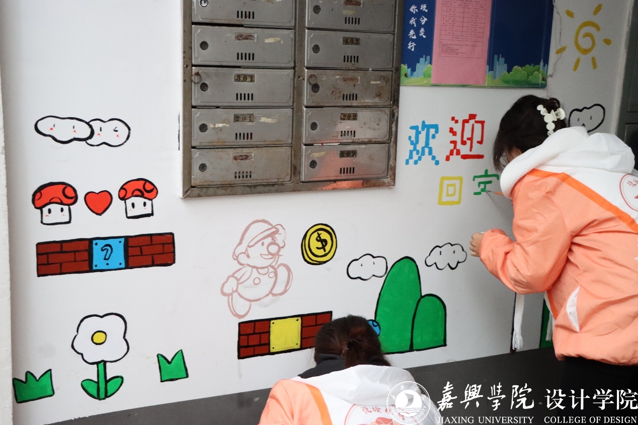 秋雨霏霏,飘飘洒洒,志愿服务就在如烟如雾的秋雨中展开。经过前期细致的策划,志愿者们分为三组,在各单元楼下的墙壁上,用画笔表达着“和谐邻里,欢迎回家”,用线条描绘着“体育强国梦”,用色彩诠释着“绿水青山就是金山银山”。三小时的创作引来了不少居民的驻足观看和鼓励,一位老大爷说“谢谢娃娃们,这么冷的天气,为社区画上这么美的一笔”。