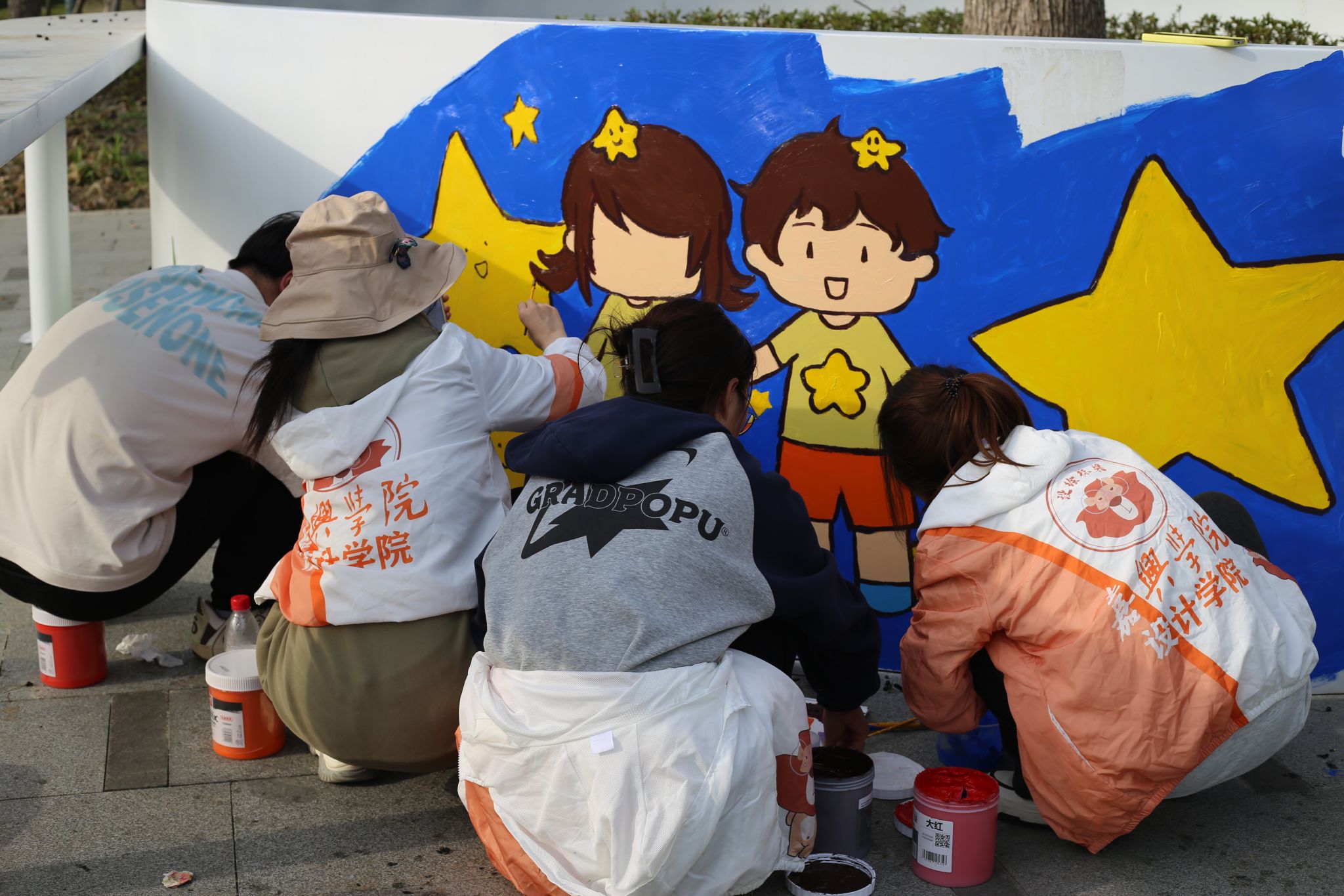 2024年3月21日12:30,永利yl23411官网“绘梦拾光”团队在指导老师刘洋的带领下来到东栅街道甪里社区赞成公园进行关爱孤独症儿童主题墙绘,为打造“星星友好社区”增添画笔。