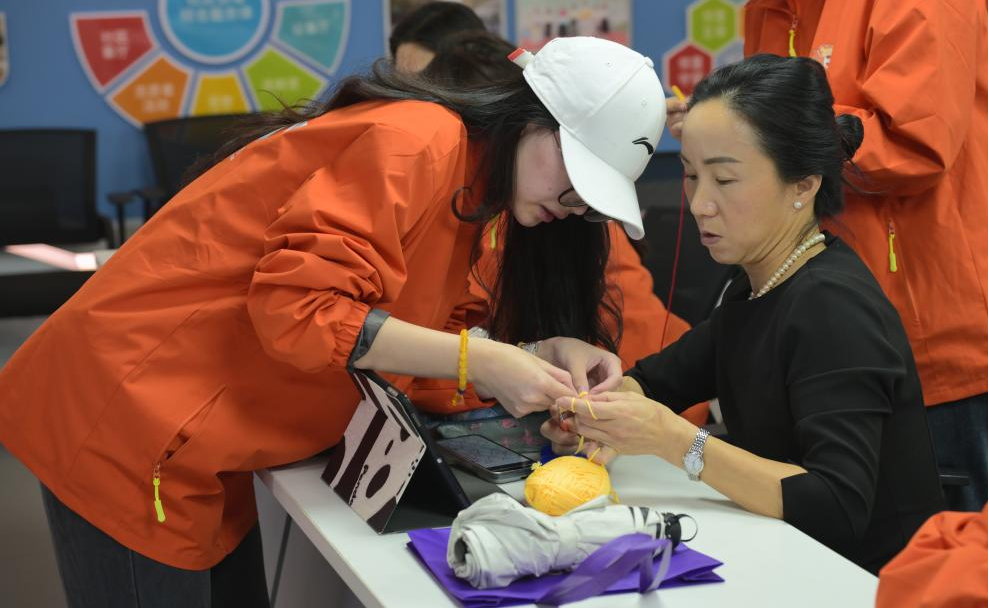 "小周老师你看,我这个转角终于平整了!"社区学员举着新织就的祖母方格织片,兴奋地向志愿者周星辰展示。作为零基础学员,她曾在起针阶段屡屡受挫,如今在志愿者连续三次课程的指导下,已能独立完成基础花型。