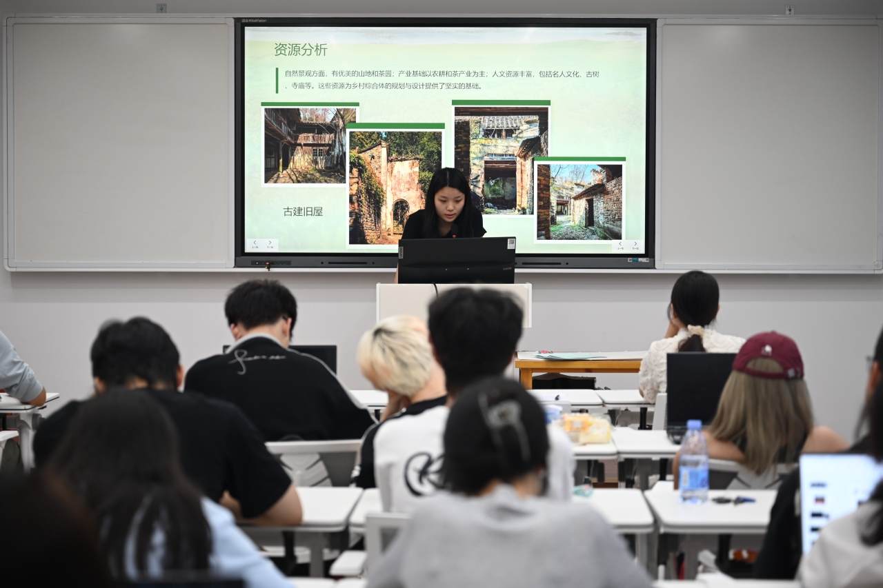 今天(9月25日),天尚设计集团有限公司的设计师王新蕊来到永利yl23411官网的课堂,指导员工的乡村景观设计作业。这是永利yl23411官网环境设计专业协同天尚设计集团有限公司共同进行的《乡土景观设计》校企合作课程教学。该课程聚焦于杭州市余杭区九峰村的改造设计。天尚设计集团的设计师来到课堂对同学们的初步设计方案进行了指导与交流,为后续深化设计奠定了基础,实践了校企协同育人、共助乡村发展的模式。
