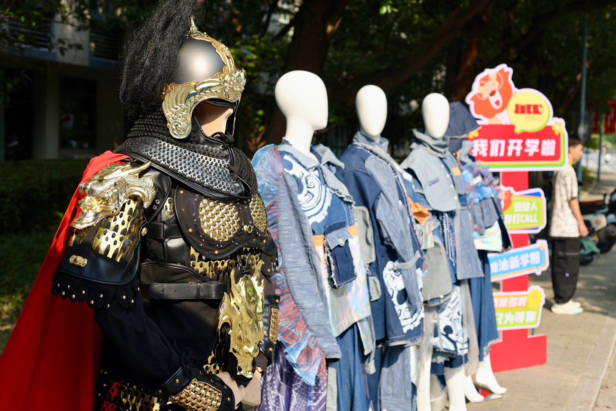 甲胄展示点:“甲光向日”团队带来特色服装与甲胄装置,传统与现代交汇,吸引众多目光,学科融合魅力尽显。