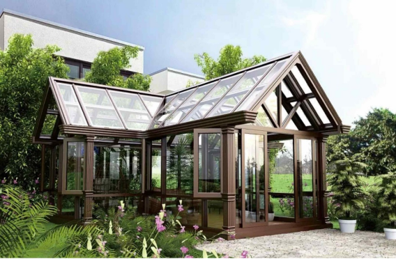 由铝型材根据用户需求,进行庭院铝艺定制,例如阳光房、凉亭、入户门、庭院门、围栏、花盆等
