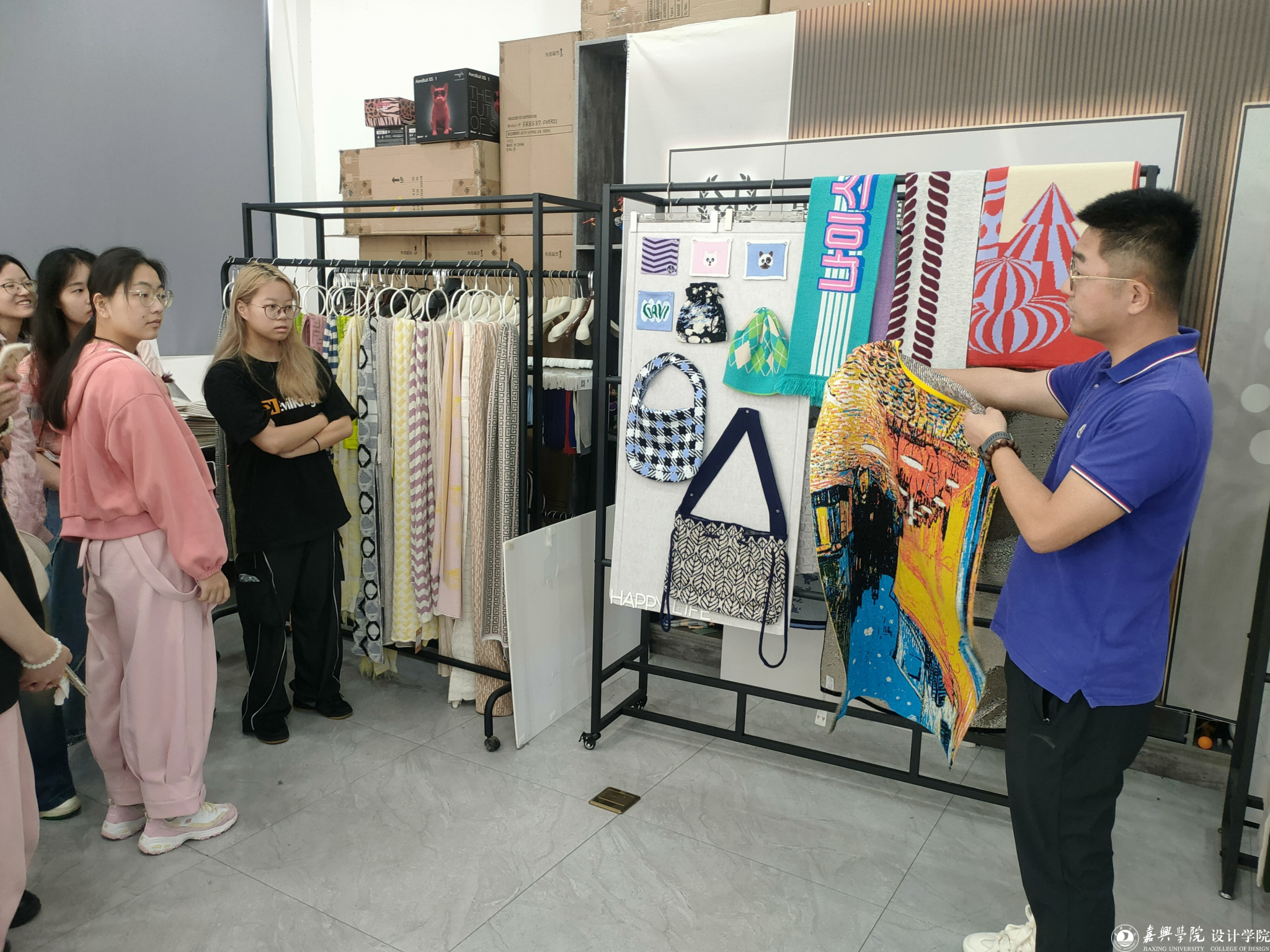 在公司总经理沈伟的陪同介绍下,刘文教授一行参观了公司展厅、办公环境、厂房等,并详细了解公司发展历程、业务领域、岗位需求等情况,同学们对公司的需求岗位如针织创意服装设计等产生浓厚兴趣,并就未来的实习情况进行了详细了解。