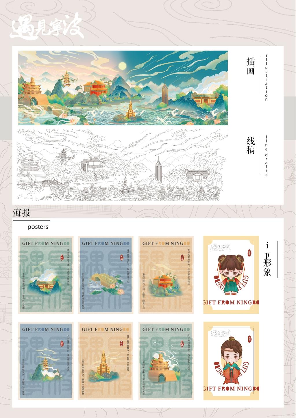 视觉182-阮丹莹-遇见宁波”插画及衍生品设计
