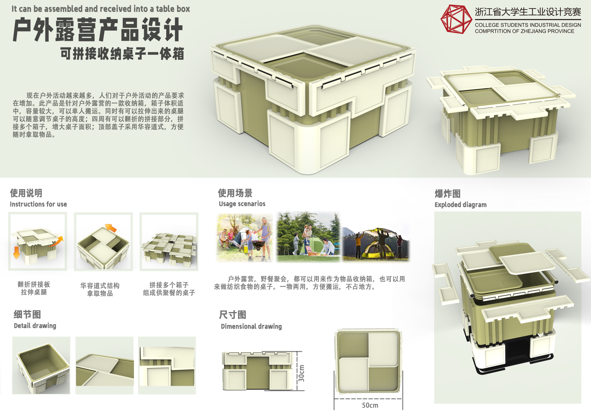 户外露营产品设计——可拼接收纳桌子一体箱